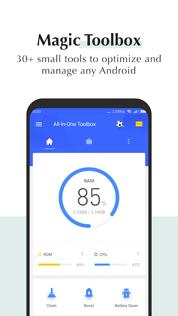 All-In-One Toolbox reclaims your Android more free space more fast speed longer battery life more optimized phone performance in a easy fast way. 🚀🚀🚀