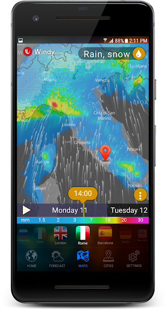 Paris, London, New York, Berlin, Rome, Madrid, Barcelona, Prague, Moscow, Sydney, Los Angeles, Tokyo or any other location worldwide – get accurate weather forecasts wherever you go.