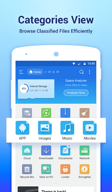 ES File Explorer (File Manager) helps you handle all your files whether they are stored in your device's memory microSD card local area network and cloud storage accounts.By default ES File Explorer (File Manager) allows you to copy move rename delete or share files to and from any of your storages. It also lets you browse and access your files by category.
