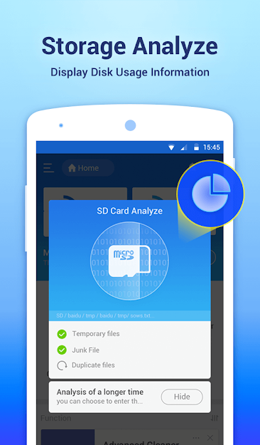 • SD Card Analyst: Analyze for App Associate Folder & Large Files & Recently Created Files & Redundancy Files & Duplicate Files to help save space; Detect Sensitive Permission & App Cache & Memory Usage to know your apps better