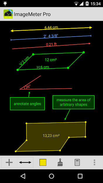 Requirements: 4.0+Overview: ImageMeter lets you measure dimensions, angles and areas in your images with ease. No more need to draw a sketch of your new apartment in order to plan the new furniture. Simply take a photo and annotate it with the dimensions on your phone or pad.