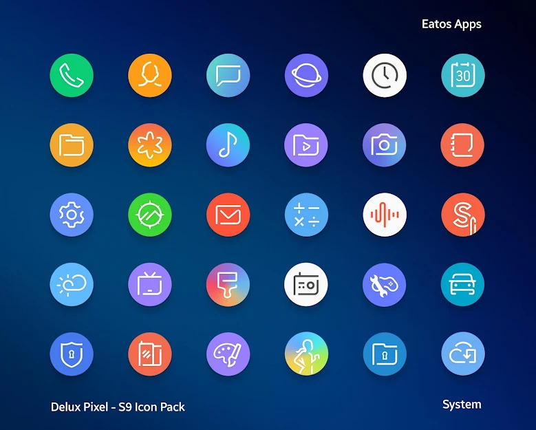 This icon pack is based on the icons of the Galaxy S8 / Note 8 in Pixel version has 2600+ icons and 107 wallpapersImportant