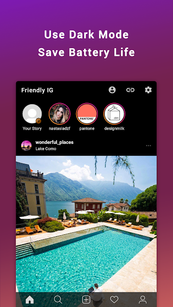 Overview: Friendly for IG is the most complete browser & downloader for IG.Like our Friendly for Facebook and Friendly for Twitter apps, it is built as an extension of the light mobile website. It preserves your battery, storage, data, use a smart notification system and block all sponsored posts.